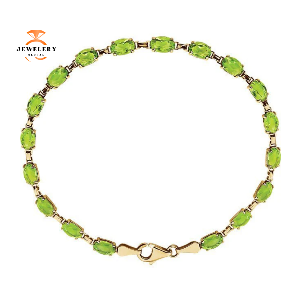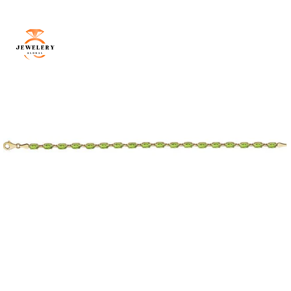 14KT Yellow Gold 10 CTW Oval Peridot Line Bracelet. 7.25″ Length With Lobster Clasp.