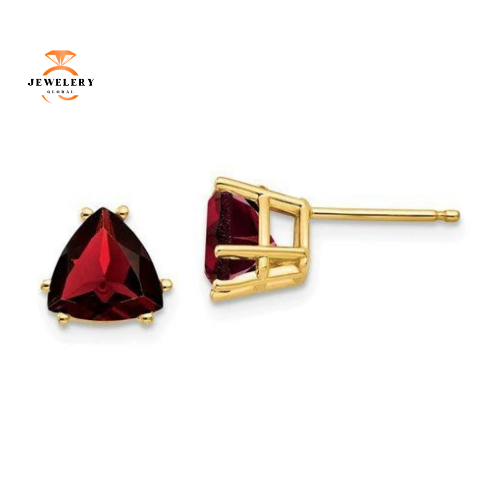 14KT Yellow Gold 7MM Trillion Cut Garnet Stud Earrings.
