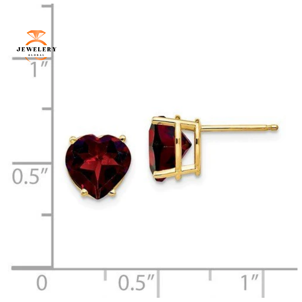 14KT Yellow Gold 8MM Heart Garnet Stud Earrings.