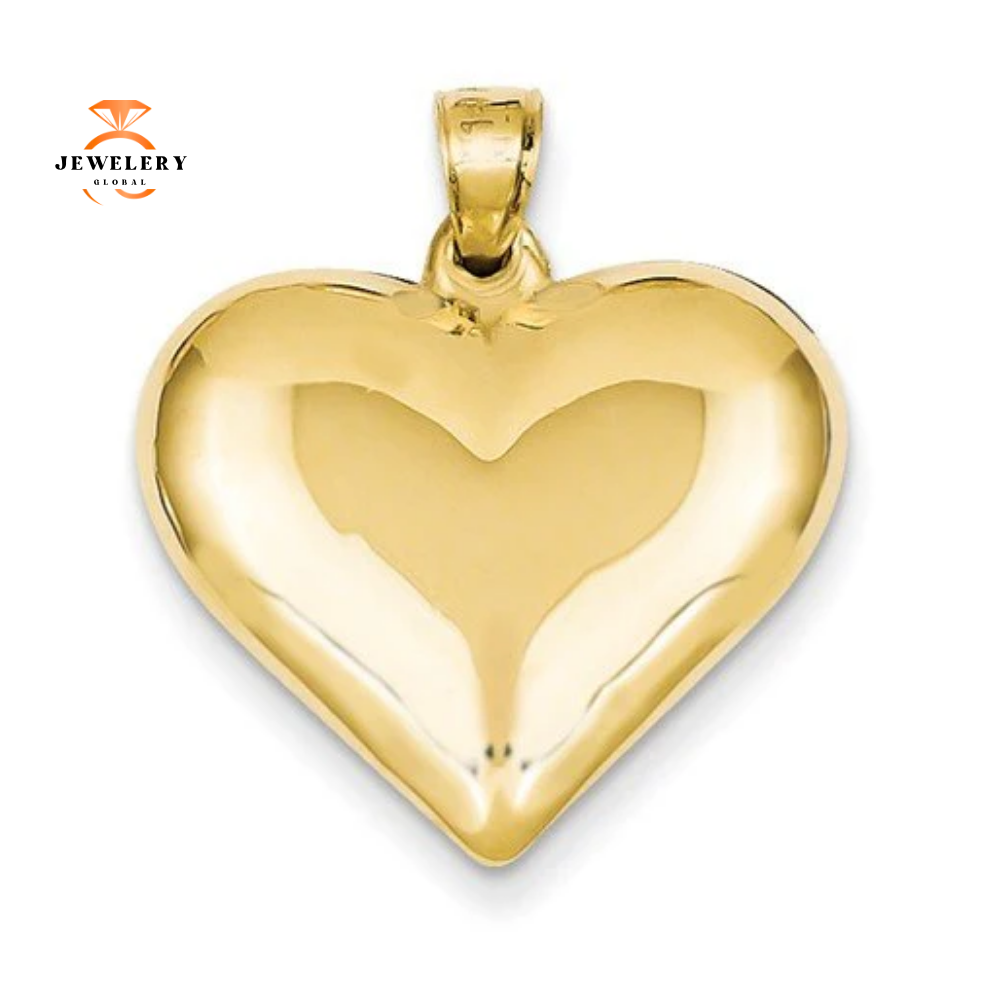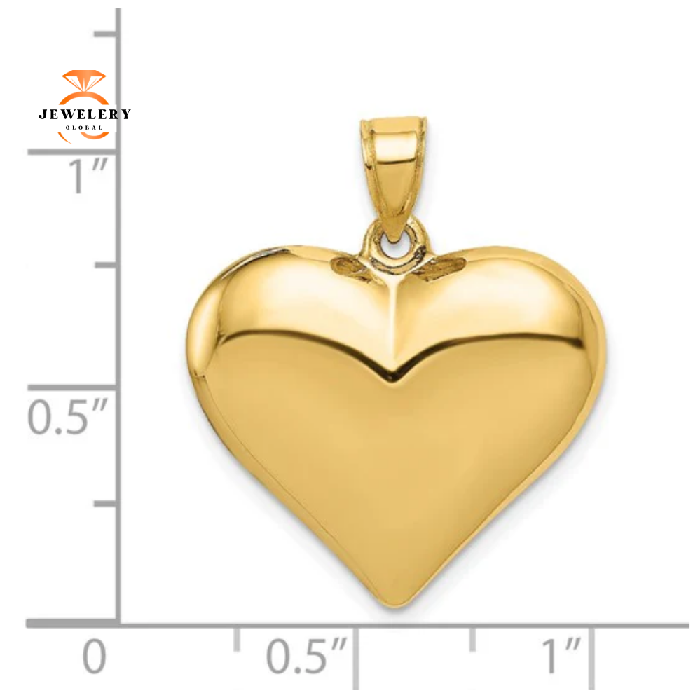 14 Karat Yellow Gold 3-D Puffed Heart Charm.