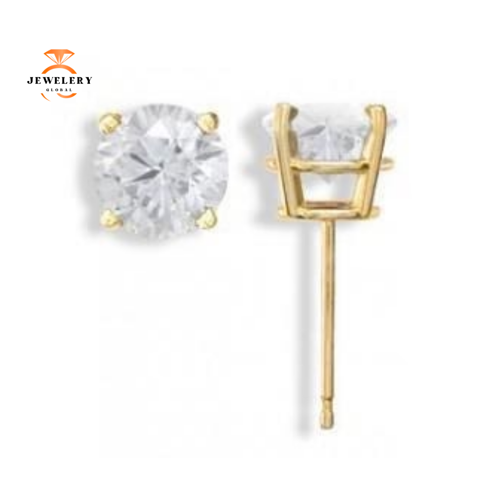 14 Karat Yellow Gold 6 Millimeter Diameter Round Cubic Zirconia Earrings With Backs