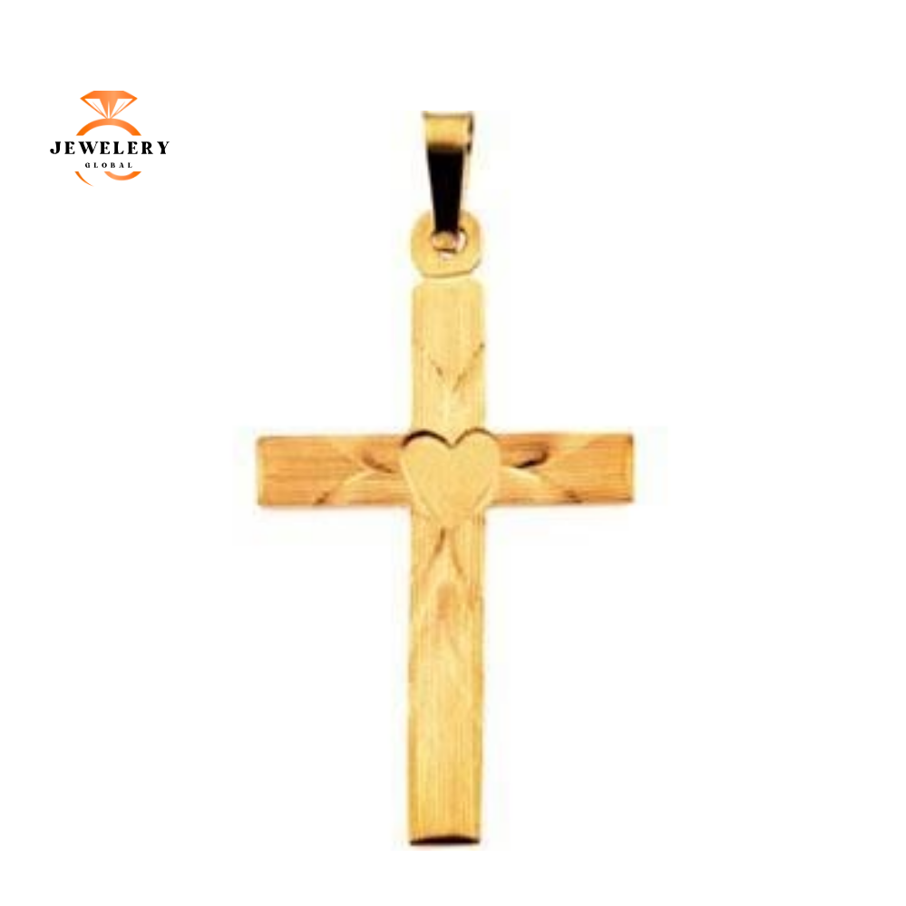 14kt gold hollow cross with heart in the center 11/16 inch wide by 1 3/16 inch high.