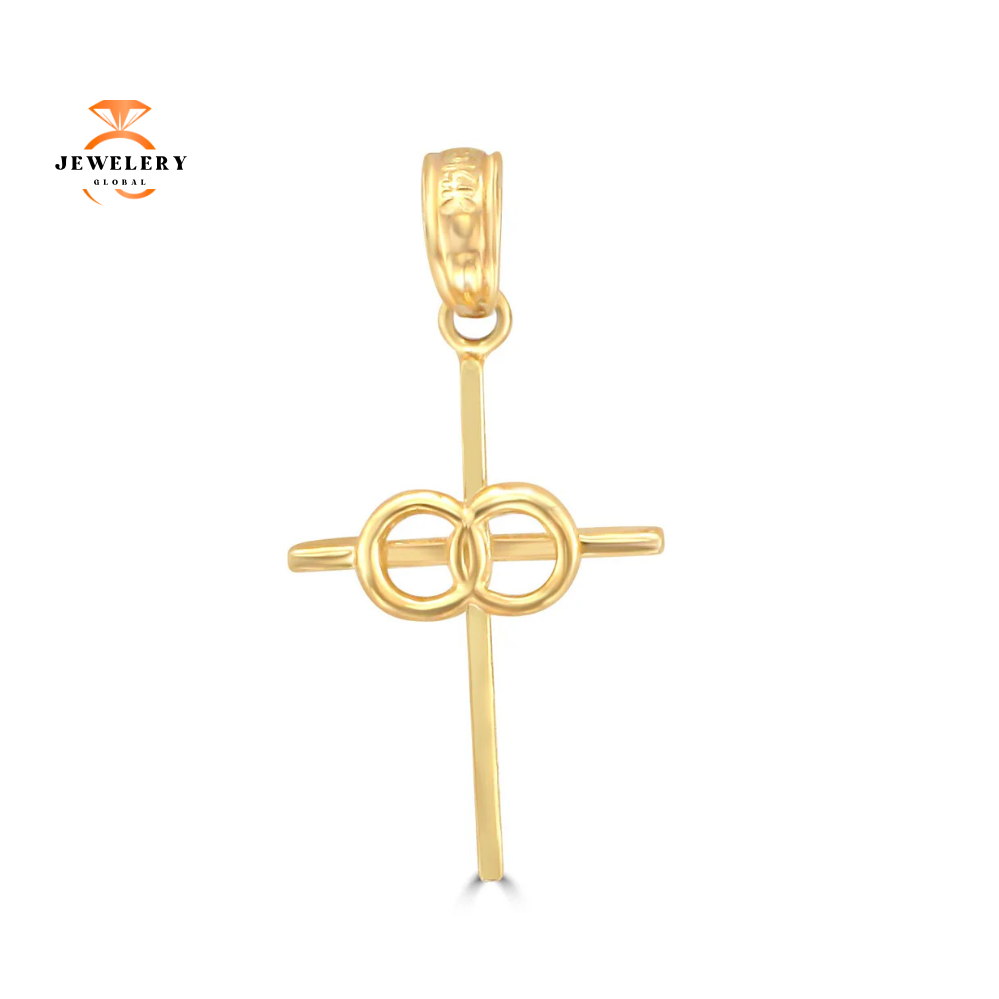 14 Karat Yellow Gold High Polished Cross With Two Circles. The Cross Measures 7/16 Inches Long By 7/8 Inches High Including Bail.
