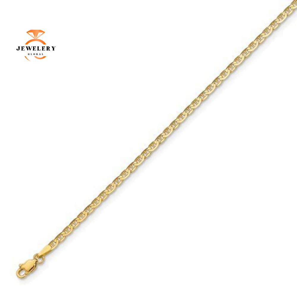 14KT Yellow Gold 2MM Anchor Link Anklet. 9″ Length With Lobster Clasp.