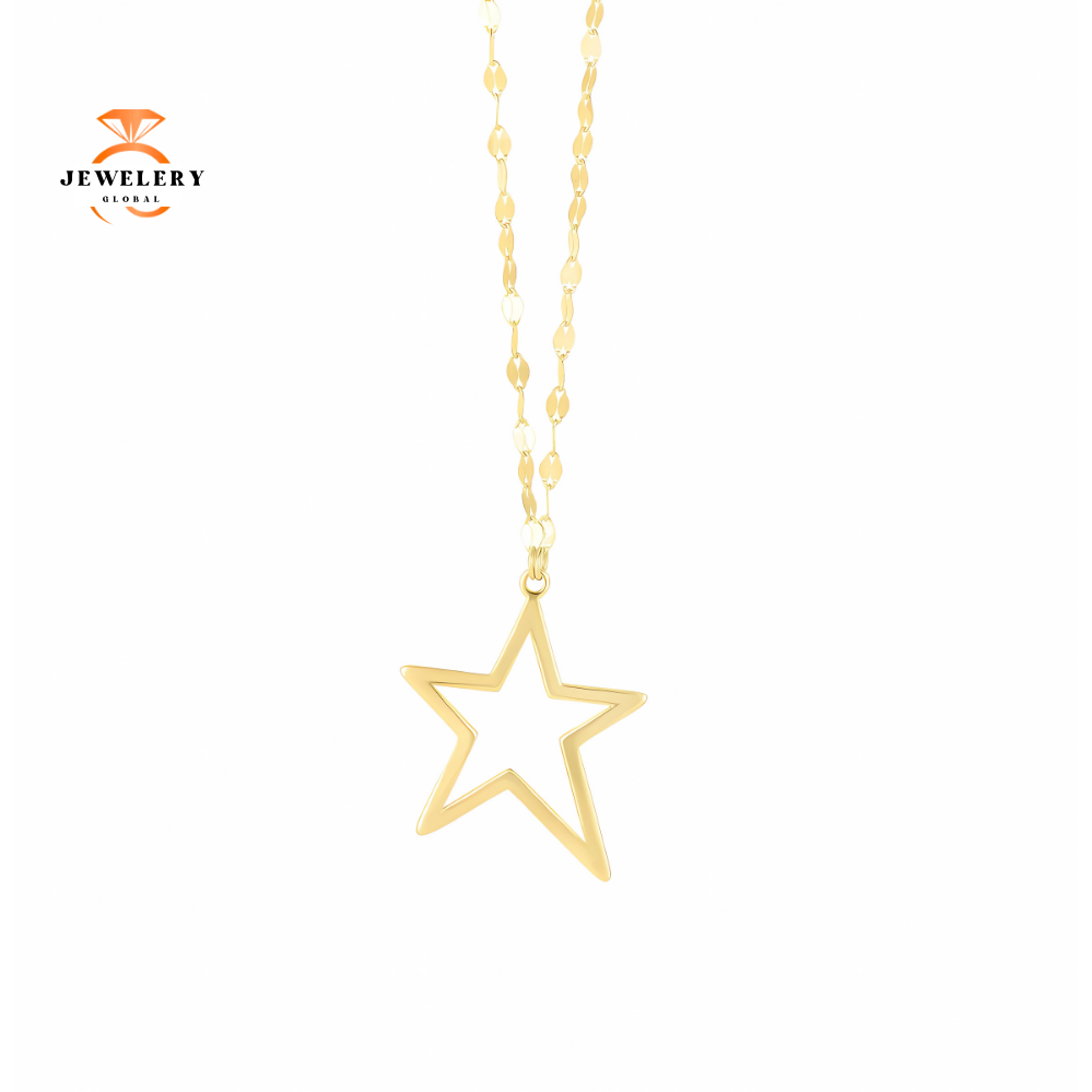 14 Karat Yellow Gold Open Star Necklace. The Star Measures 0.90 Inches High By 0.70 Inches Wide And Comes With An 18 Inch Mirror Chain.