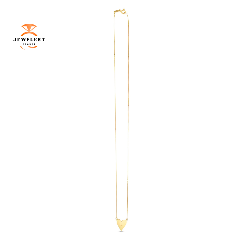 Emilique 14 Karat Yellow Gold 18 Inch Polished Elongated Heart Necklace With A 0.01 Carat Round Diamond. The Necklace Comes With A Spring Ring Clasp.