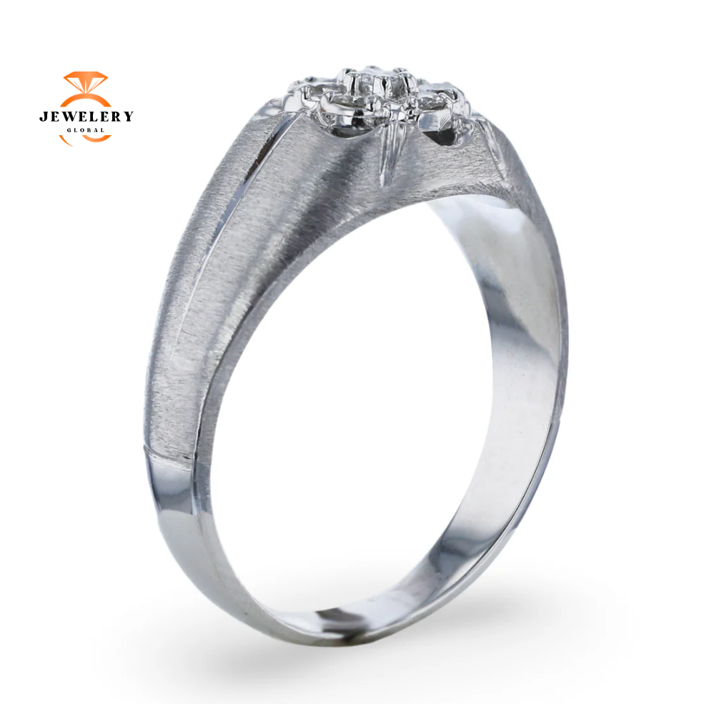 14 Karat White Gold 0.45 Carat Total Weight Round Brilliant Diamond Men’s Cluster Brushed Ring.