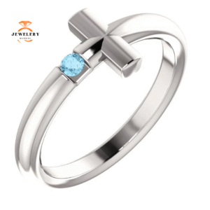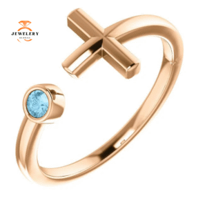 14KT GOLD ROUND AQUAMARINE SIDEWAYS CROSS RING