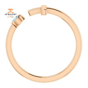 14KT GOLD ROUND AQUAMARINE CUFF CROSS RING