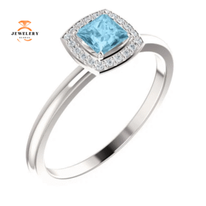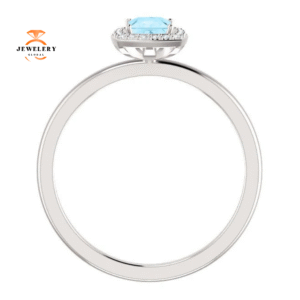 14KT GOLD 1/4 CT AQUAMARINE & 1/20 CTW DIAMOND HALO RING