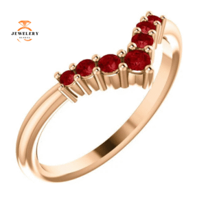 14KT GOLD 1/4 CTW GENUINE ROUND RUBY GRADUATED “V” RING