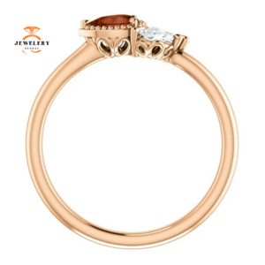 14KT GOLD 1/4 CT GARNET & 1/8 CTW DIAMOND 3 STONE RING