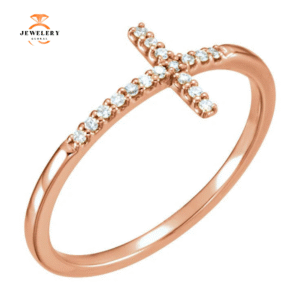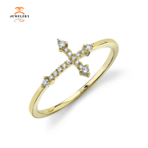 14KT GOLD .08 CTW DIAMOND SIDEWAYS CROSS RING