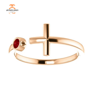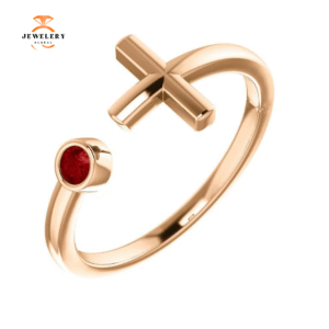 14KT GOLD .09 CT RUBY BEZEL-SET CUFF CROSS RING