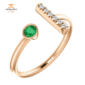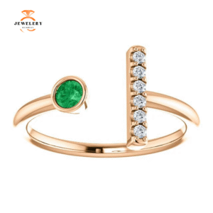 14KT GOLD .11 CT EMERALD & .05 CTW DIAMOND BEZEL BAR RING