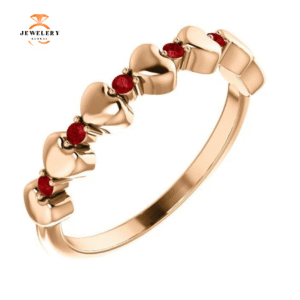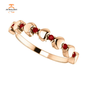 14KT GOLD .12 CTW RUBY STACKABLE HEART RING