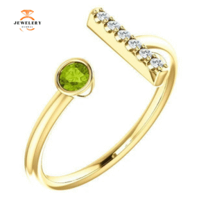 14KT GOLD .15 CTW PERIDOT & .25 CTW DIAMOND ACCENT NEGATIVE SPACE RING