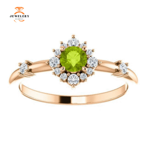 14KT Gold .30 CT Peridot & .16 CTW Diamond Accent Halo Ring