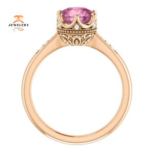 14KT GOLD BABY PINK PASSION TOPAZ & .06 CTW DIAMOND ACCENT RING