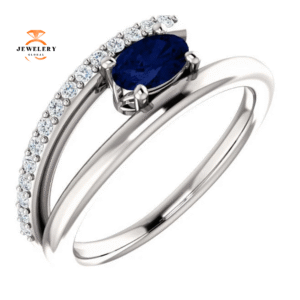 14KT GOLD BLUE SAPPHIRE & 1/8 CTW DIAMOND BYPASS RING