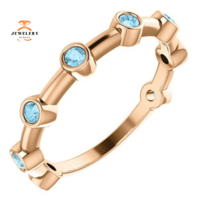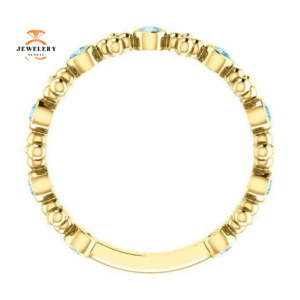 14KT GOLD 0.32 CTW AQUAMARINE BEZEL-SET STACKABLE RING