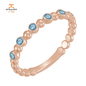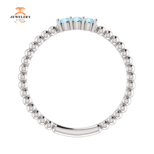 14KT GOLD 0.12 CTW AQUAMARINE 3 STONE BEADED STACKABLE RING