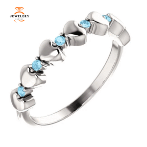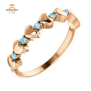 14KT GOLD 0.15 CTW ROUND AQUAMARINE 5 STONE BEADED STACKABLE RING