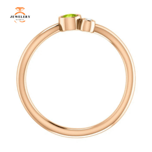 14KT GOLD 0.13 CT PERIDOT & 0.02 CTW DIAMOND BEZEL-SET 2 STONE RING