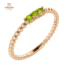 14KT GOLD 0.15 CTW ROUND PERIDOT 3 STONE BEADED STACKABLE RING