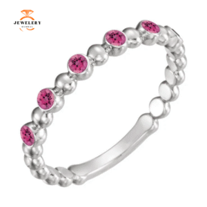 14KT GOLD 0.18 CTW PINK TOURMALINE BEADED STACKABLE RING