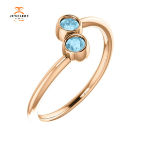 14KT GOLD 0.20 CTW ROUND AQUAMARINE 2 STONE RING
