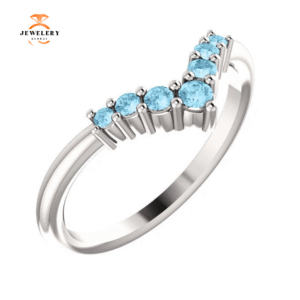 14KT GOLD 0.20 CTW ROUND AQUAMARINE GRADUATED “V”