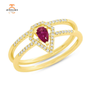 14KT GOLD 0.22 CTW PEAR SHAPE RUBY & 0.15 CTW DIAMOND RING