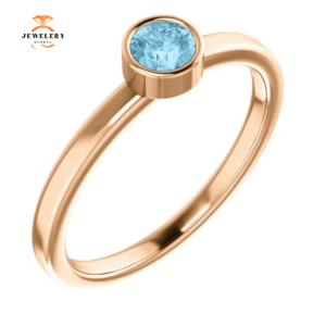 14KT GOLD 0.23 CT ROUND AQUAMARINE BEZEL-SET RING