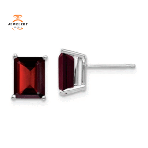 14KT WHITE GOLD 3.40 CTW EMERALD CUT GARNET STUD EARRINGS