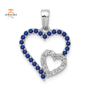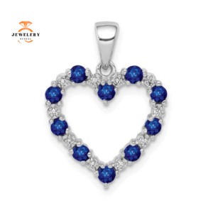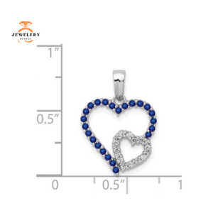 14KT WHITE GOLD DIAMOND AND SAPPHIRE HEART PENDANT