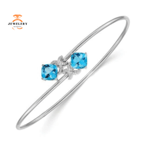 14KT WHITE GOLD DIAMOND & 2.50 CTW BLUE TOPAZ FLEXIBLE BANGLE