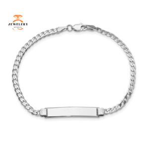 14KT WHITE GOLD FLAT CURB LINK ID BRACELET-7 INCHES
