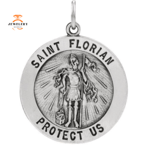 14KT WHITE GOLD ROUND SAINT FLORIAN MEDAL