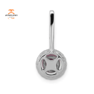 14KT WHITE GOLD RUBY AND ROUND DIAMOND HALO PENDANT