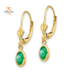 14KT YELLOW GOLD 1.00 CTW OVAL SHAPE EMERALD DROP EARRINGS