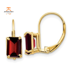14KT YELLOW GOLD 2.50 CTW EMERALD CUT GARNET LEVERBACK EARRINGS