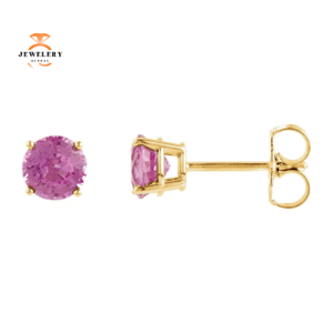 14KT GOLD 1/2 CTW ROUND PINK TOURMALINE STUD EARRINGS