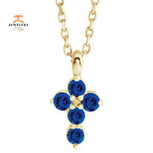 14KT GOLD BLUE SAPPHIRE PETITE CROSS NECKLACE