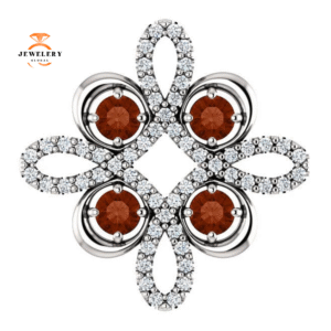 14KT GOLD GARNET AND DIAMOND CLOVER PENDANT