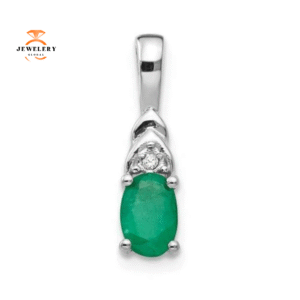 14KT Gold Oval Emerald and Diamond Pendant