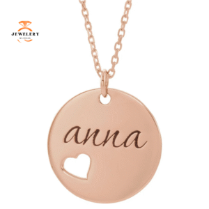 14KT GOLD PIERCED HEART ENGRAVABLE DISC 16-18″ NECKLACE