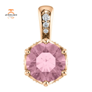 14KT GOLD PINK PASSION TOPAZ & .06 CTW DIAMOND ACCENT PENDANT