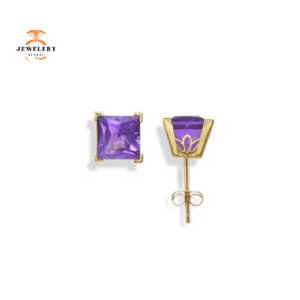 14KT GOLD PRINCESS CUT AMETHYST SCROLL EARRINGS