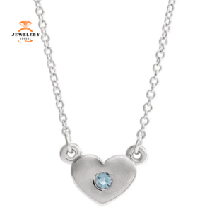 14KT GOLD ROUND AQUAMARINE HEART PETIITE NECKLACE